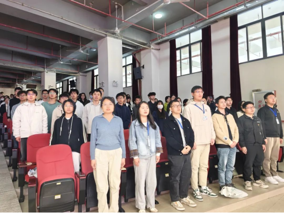 伴随着国歌声,开班典礼缓缓拉开帷幕。旋律激昂,全场人员整齐肃立,目光中闪烁着对伟大祖国的深情厚谊与崇高敬意,国歌声中凝聚的是每一位成员对党的忠诚与向往。