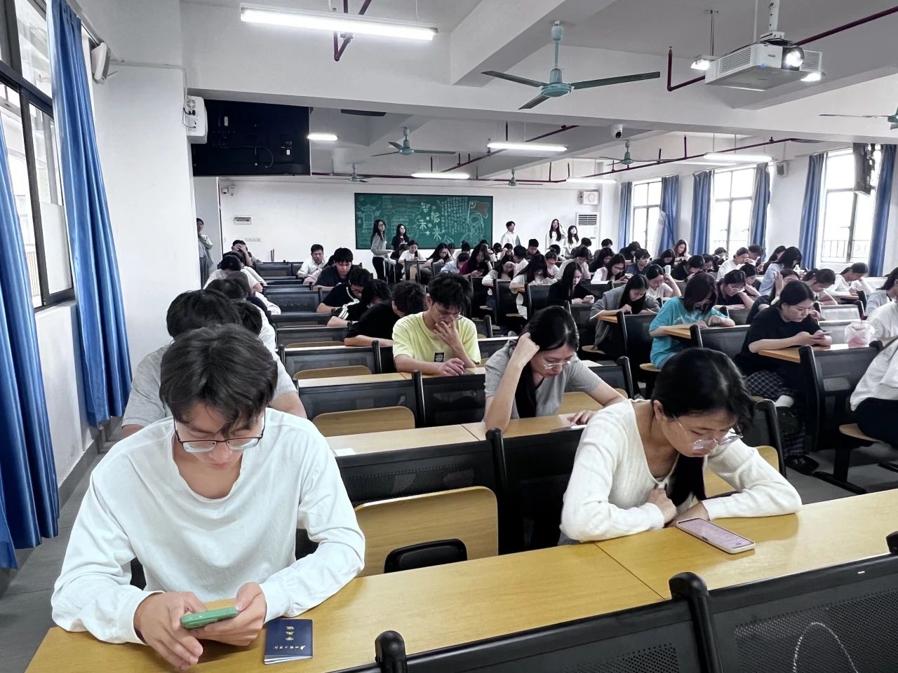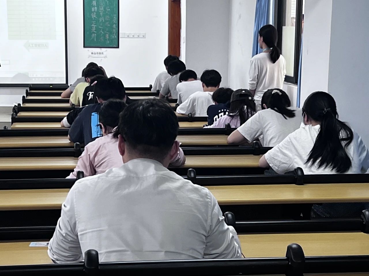 考试铃声一响,考生们迅速进入状态,认真审题,奋笔疾书,将自己的知识储备尽情展现在答卷上。与此同时,党支部工作人员在考场里巡查,严格监考,为考生们全力营造了一个公平、公正的考试环境。