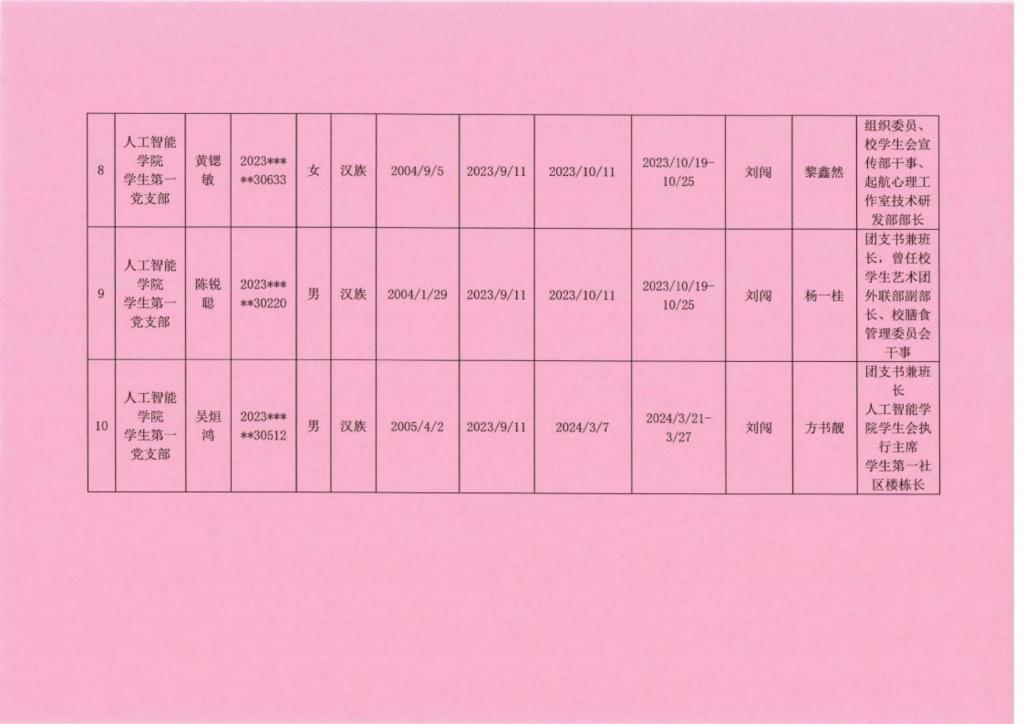 经党支部、党总支审查,拟将麦译等10名同志接收为中共预备党员,为增强发展党员工作的透明度,强化群众的监督作用,减少工作失误和偏差,确保党员发展工作质量,根据发展党员工作有关要求,现将具体情况公示如下。
