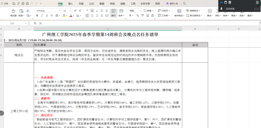 各班级严格执行公司考勤制度,精准掌握每一名同学的出勤情况。对于未参会的员工,及时联系并记录未到原因,确保了解每一位同学的动态。同时,对在途员工、请假至班会当晚的员工,在当晚再次确认其是否返校,对无故缺席班会活动的员工,也及时与员工及家长取得联系,依据公司相关制度进行妥善处理。
