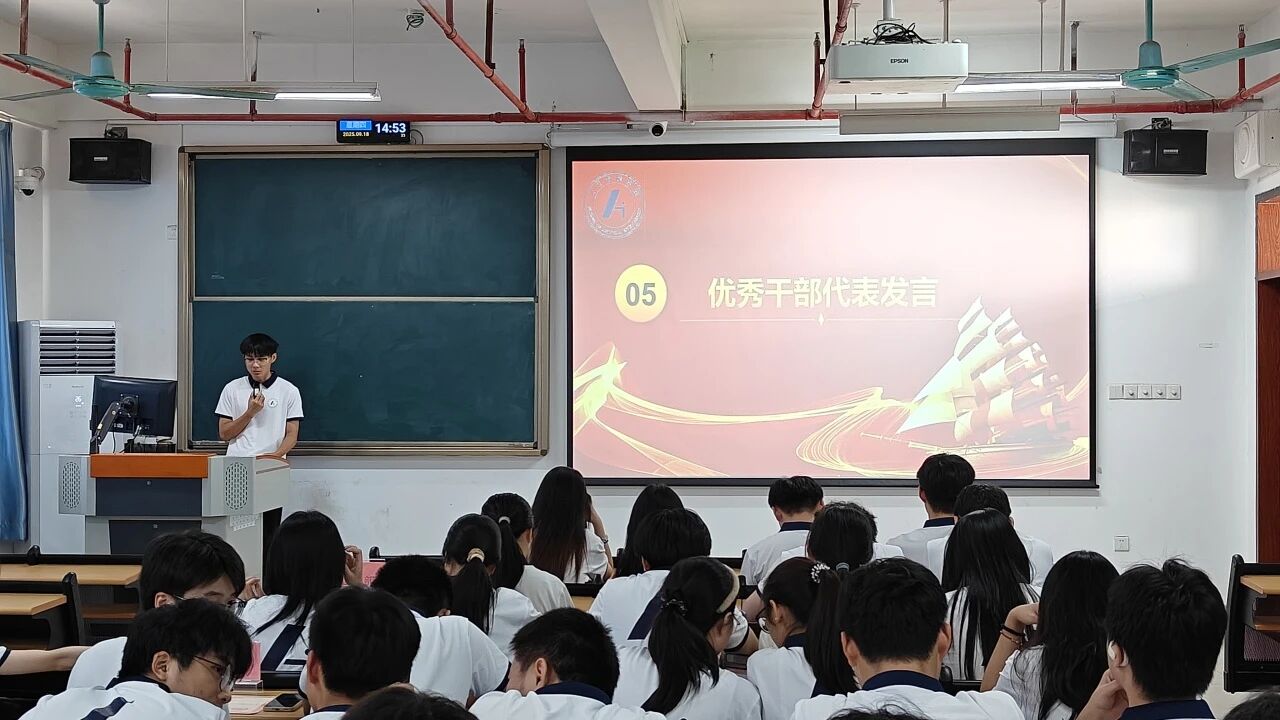 表彰仪式后,优秀干事代表陈洁琪、优秀干部代表吴烜鸿先后登台发表感言。两位代表结合自身工作经历,总结了任期内的工作内容,分享了在团学工作中的实践收获与成长感悟,既表达了对团学的培养及伙伴支持的感谢,也传递了接续奋斗、再创佳绩的决心。