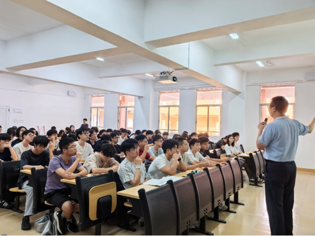 课程开始,王煜林经理从发展历程、架构、团队、实验室四方面介绍了公司概况,详细阐述了以党建为引领,构建“党建+育人+科研+服务”的一体化格局,以及创新“六融合”的应用型人才培养体系。