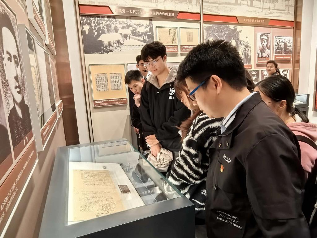 抵达纪念馆后,全体成员在讲解员引导下依次参观“上下求索”“凝聚共识”“风起云涌”“理想之光”四大主题展区。展览通过108件珍贵文物、历史照片、全息影像和场景复原等多元手段,生动再现了1923年中共三大召开的时代背景,系统阐释了会议的核心议程,全面展现了“国共合作”等历史性成果。