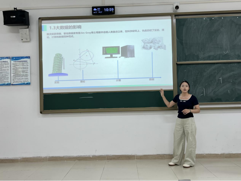 张宁宁老师的《大数据原理及应用》展示以技术发展史为主题。她运用动态可视化课件,生动呈现了大数据技术从萌芽到成熟的关键突破。在技术演进的关键节点,自然融入了科技伦理教育,穿插行业领军人物的创新故事,增强了课程的人文内涵和启发性。