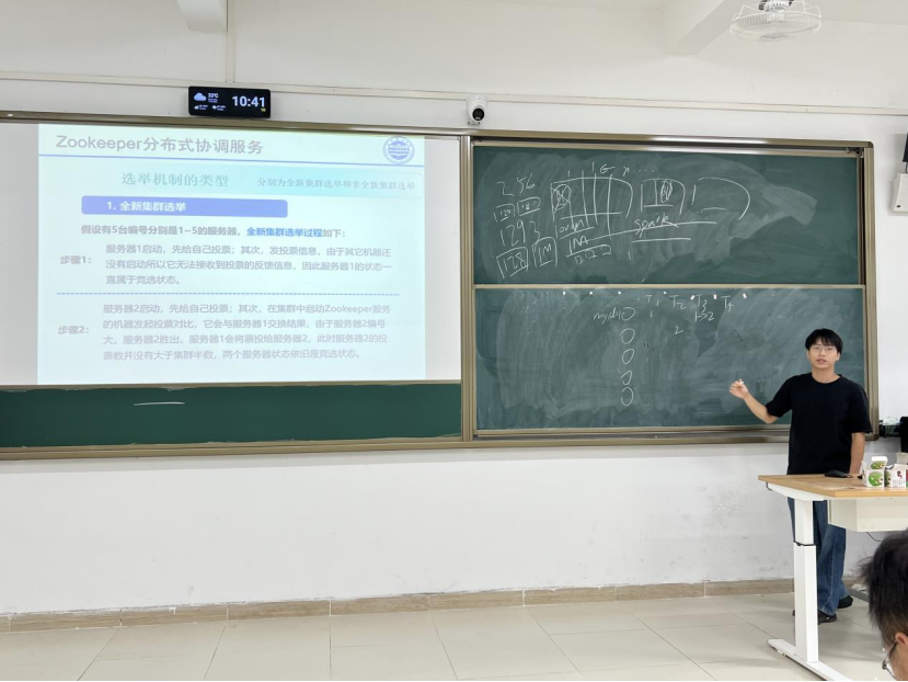 林志聪老师的《Hadoop大数据分析》展示聚焦Zookeeper协调服务。他精心设计了"集群选举"模拟实验,生动展示了分布式一致性的实现机制。在理论讲解环节,采用"概念地图"将Zookeeper的核心功能可视化呈现,并重点剖析了典型故障场景的排查思路,展现了丰富的实践经验。