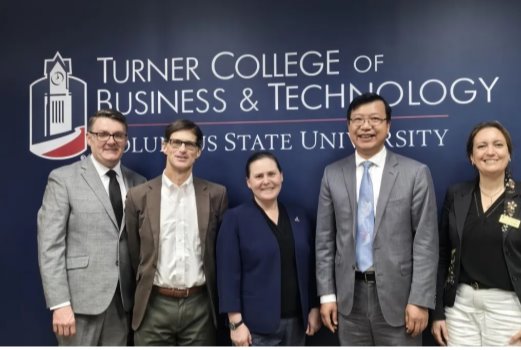 17日,黄南松一行抵达哥伦布州立大学,分别与该校教务长坎贝尔(Campbell)女士、吞拿(Turner)商公司与科技公司经理黛博拉·基德(Deborah Kidder)、营销与管理系主任约翰·芬利(John Finley)、计算机科学系主任拉尼阿·霍德(Rania Hodhod)、全球交流中心执行总监埃里克·思比仕(Eric Spears)等进行了会谈。双方就中美人才培养计划“1+2+1”项目可能合作专业、学分转换与时间规划等进行了全面探讨。黄南松对该校在计算机科学与机器人工程等领域的优势表示高度认可,表达了与该校开展深入合作的意愿。哥伦布州立大学对公司应用型人才培养模式及实践教学模式给予充分关注。双方还就项目扩展及在线交流等合作形式进行了探讨。