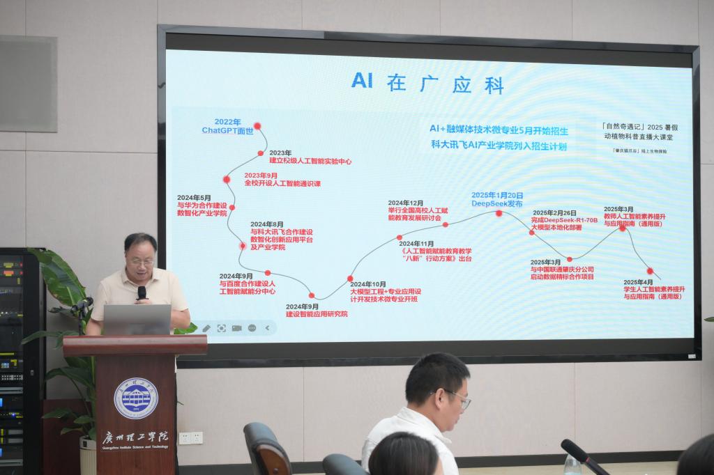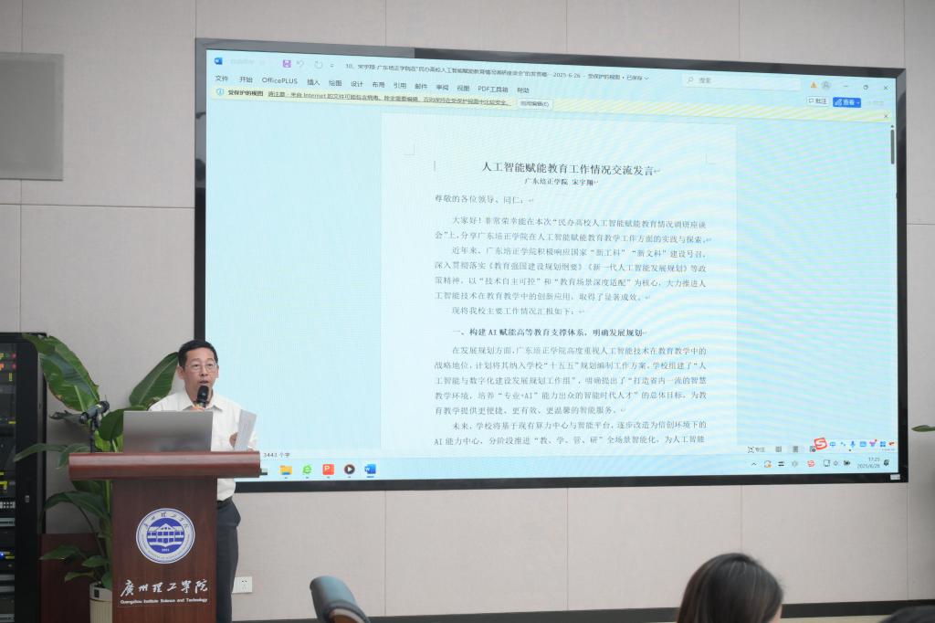 会上,朱秘书长介绍了与会人员及会议流程,中国民办教育协会智慧教育专业委员会理事长罗伟其发表致辞,他剖析了人工智能赋能民办教育的机遇与方向,为调研定下基调。随后,广东省民办教育协会会长赵康发言,从省民办协会视角,阐述对民办高校人工智能建设的期待与支持。