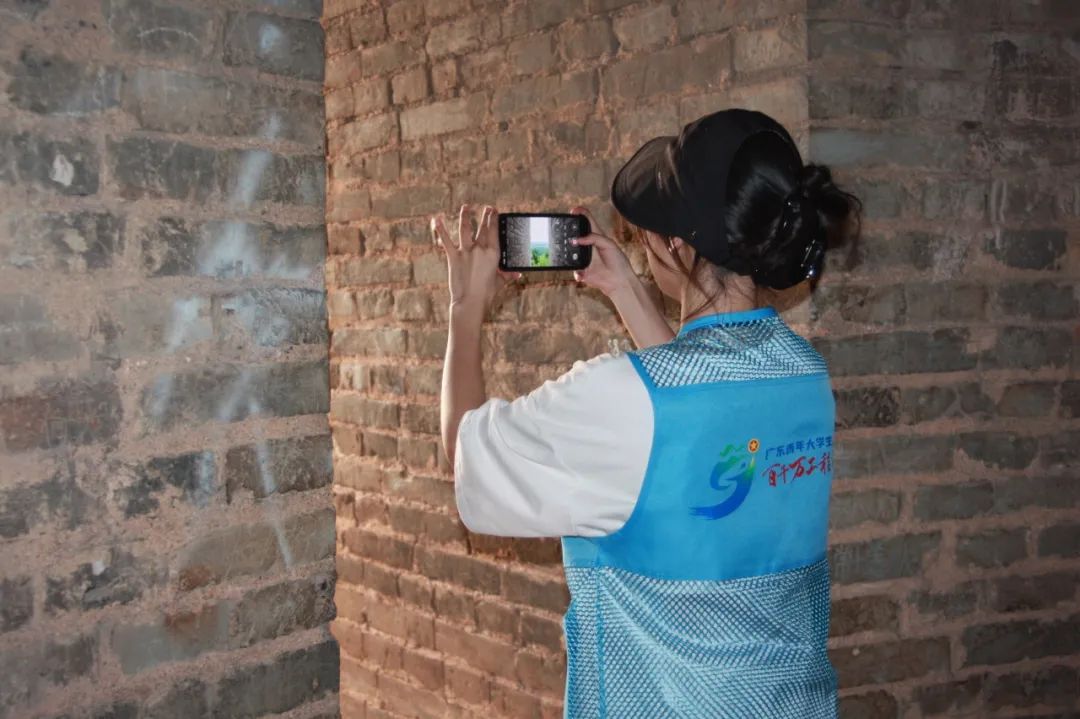 7月17日,队员们来到元魁塔下。古塔耸立于赤壁丹崖之上,底层由花岗石镶嵌,余层以青砖砌筑,塔门的题联和外壁的碑刻都彰显着历史的厚重。队员们分工合作,摄影组记录塔的建筑细节,文献组结合侨批记载讲解其历史意义。大家还登上154级石级到达第八层拍摄,并选取逆光角度捕捉古塔与江景交融的画面,凸显其“守望者”的意象。