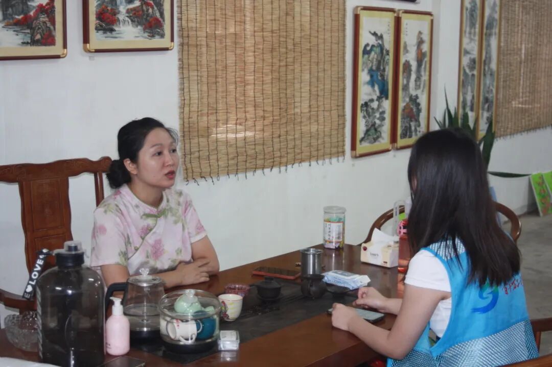 7月17日实践队走进隐于市井的韩江画坊,专访了韩江画坊主人、梅州市国画协会成员廖秀红女士。画坊内墨香氤氲,悬挂的水墨作品多以松口古镇为题材,从晨曦中的火船码头到夕阳下的元魁塔,每幅画都凝聚着廖老师对家乡的深情。采访中,队员们与廖老师深入交流。谈及创作场景选择,廖老师表示松口的历史遗迹承载着客家人的集体记忆;探讨画作对推广松口文化的作用时,她认为这些作品是展示松口魅力的窗口,能让更多人了解松口文化。此外,廖老师还分享了参与古镇文旅融合项目、开发文创产品以及支教、举办青少年国画公益课的经历,展现了她对文化传承的坚守。实践队成员还在廖老师的指导下体验水墨创作,感受传统艺术的精妙,并为韩江画坊拍摄了纪录片,希望通过镜头传递松口的山水人文。