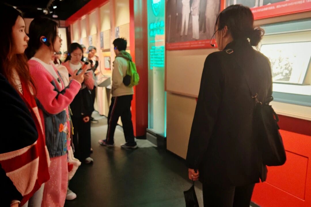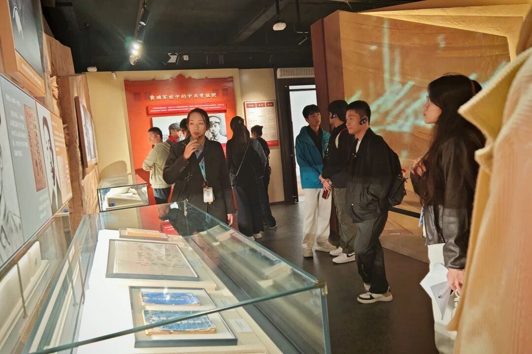 随后,同学们走进四个主题展厅,在珍贵文物与详实史料中探寻历史脉络。泛黄的学员日记、锈迹斑斑的枪械弹药、复刻的作战地图,搭配生动的图文解说与场景复原,系统展现了黄埔军校从创立到发展的壮阔历程,以及师生们投身革命、浴血奋战的英雄事迹,让大家对“亲爱精诚”的校训精神有了更深刻的理解。