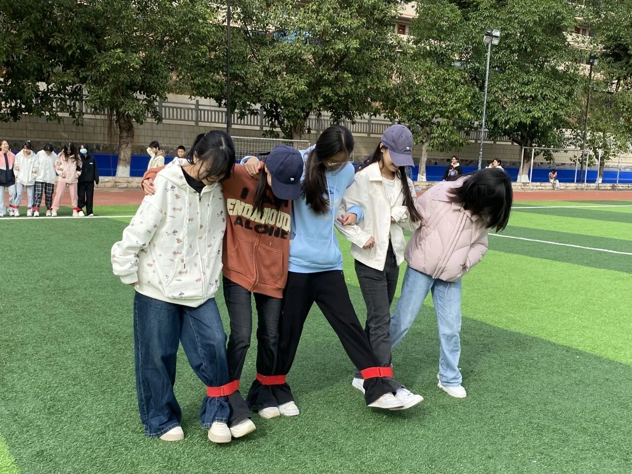 绑紧绑带,喊响口号,让青春的节奏在脚踝共振!五人六足不仅是速度与平衡的较量,更是默契、信任与团队协作的终极试炼!11月20日上午九点半,备受瞩目的五人六足决赛在绿茵足球场热力开锣,掌声、呐喊、秋风与阳光交织,见证并肩冲刺的高燃瞬间!