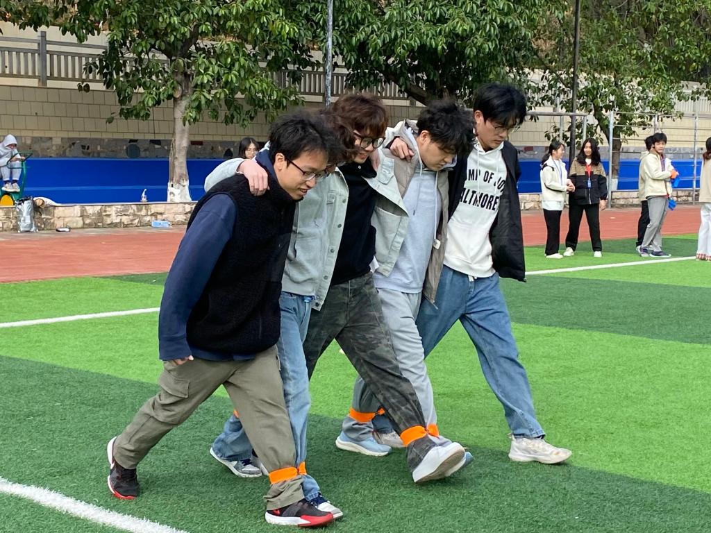 赛场落幕,掌声犹热,绑带虽解却系紧了心的距离;公司学子肩搭肩、汗汇汗,用同一节拍把“我”踏成“我们”,让五人六足的青春故事化作最燃的团结勋章,在绿茵上刻下协作的永恒注脚!