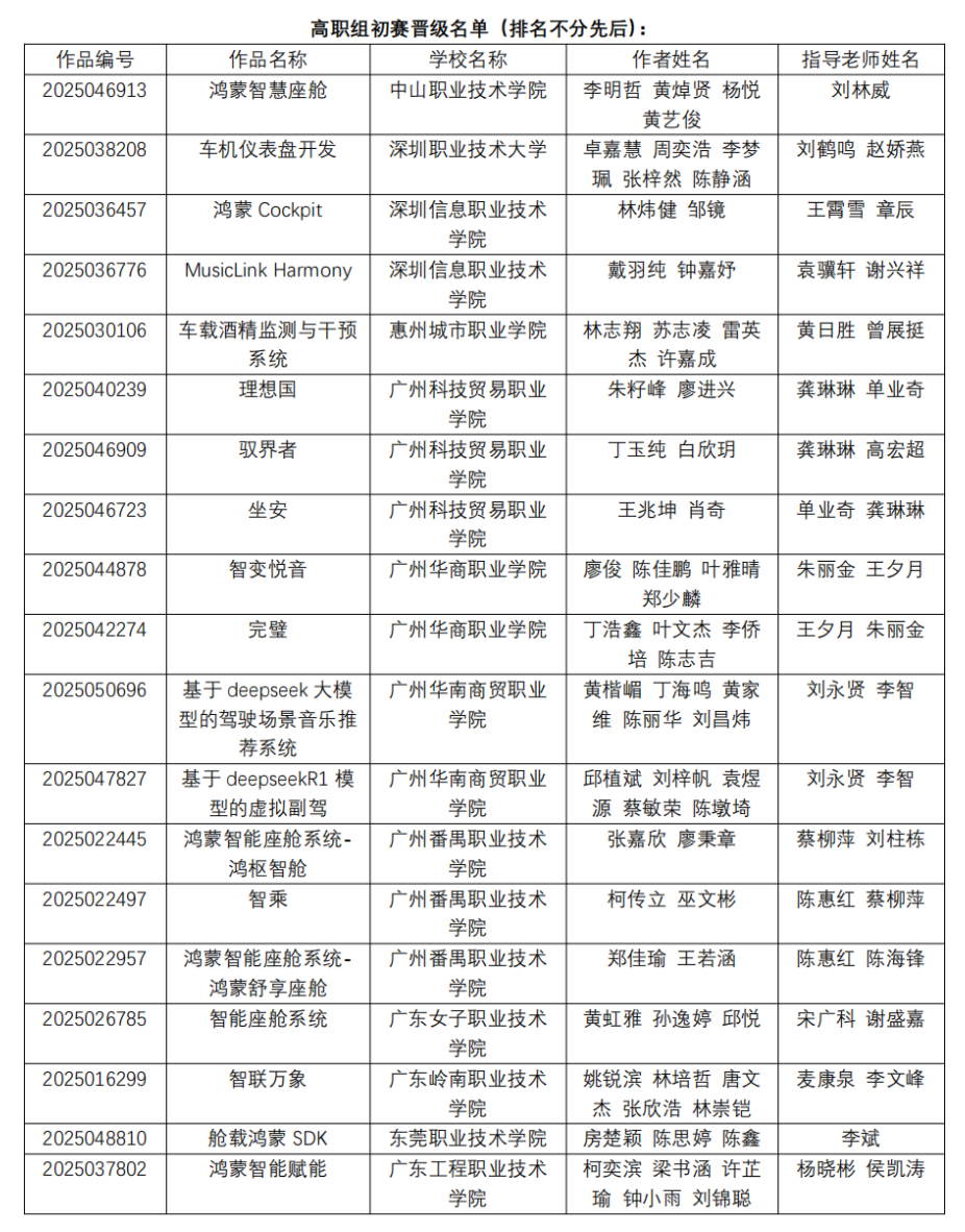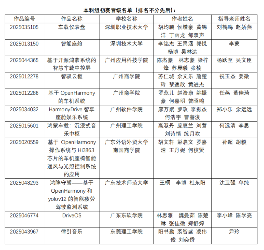 根据2025年省赛初赛成绩结果,以下作品成功晋级,具体名单如下: