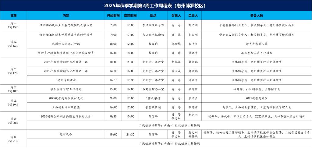 2025年秋季学期第2周工作周程表