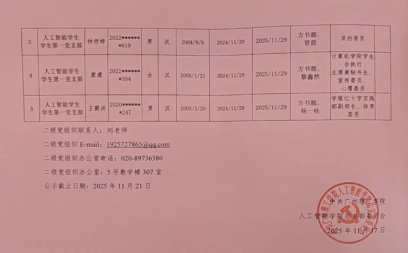 二级党组织办公室:5栋教学楼307室
