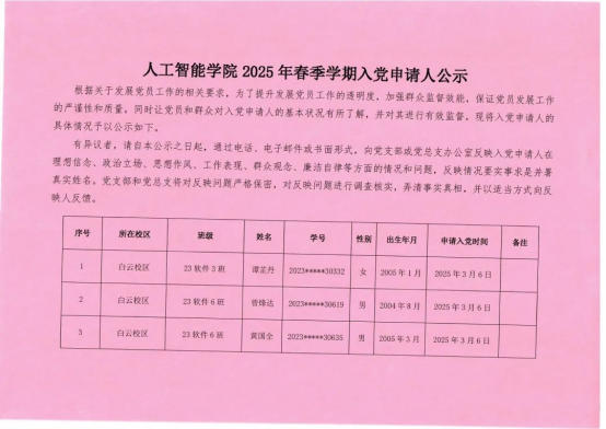 2025年春季学期入党申请人公示